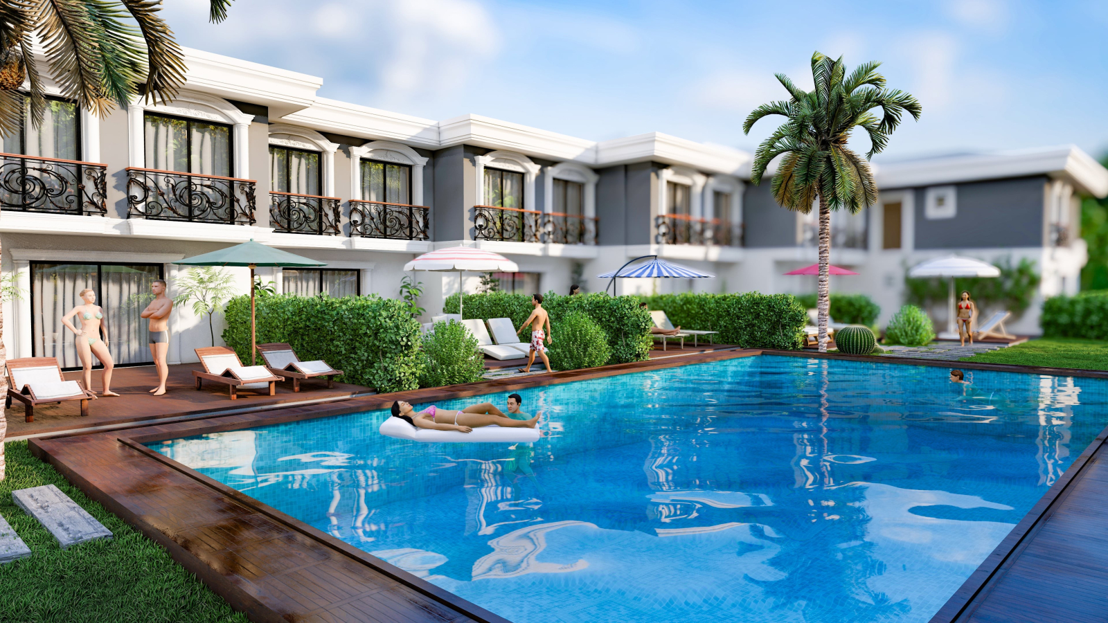 Özel bahçenizde keyifli anlar yaşarken, yüzme havuzunda serinleyebilir, denizin huzurunu hissedebilirsiniz.