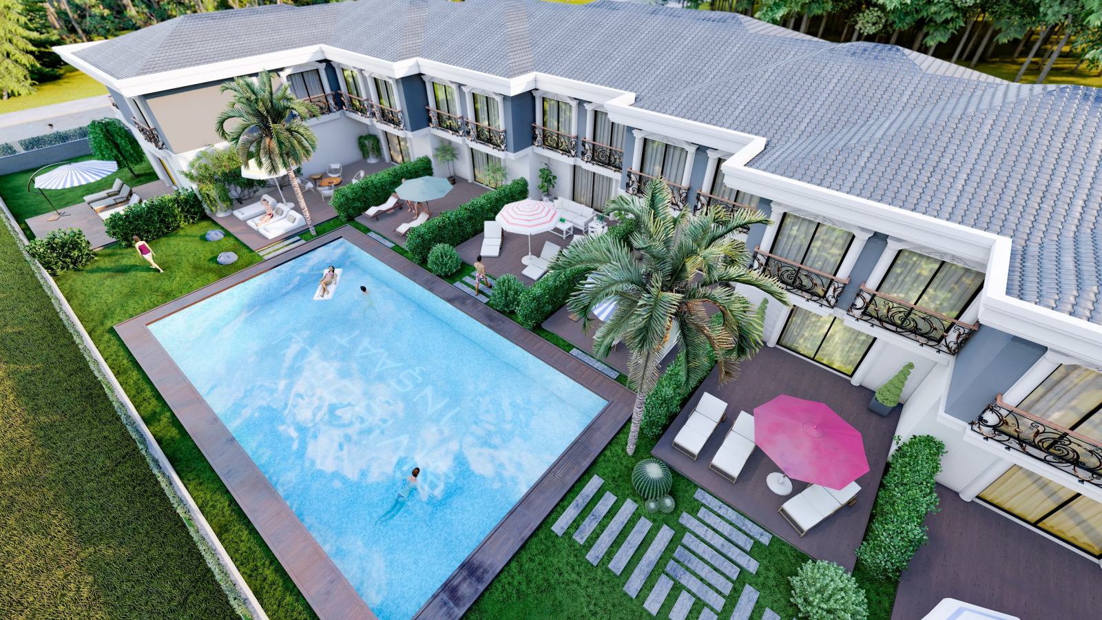 Özel bahçenizde keyifli anlar yaşarken, yüzme havuzunda serinleyebilir, denizin huzurunu hissedebilirsiniz.